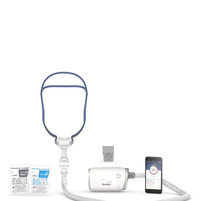 Introducing AirMini - the world's smallest CPAP device, suitable for use at home or while you're away.Engineered to deliver the same quality of therapy you have grown to trust from ResMed, you will never need to choose between therapy performance and freedom again. Featuring a unique venting system and waterless humidification, it combines the latest technologies in a sleek, pocket-sized design that can be used at home or away.